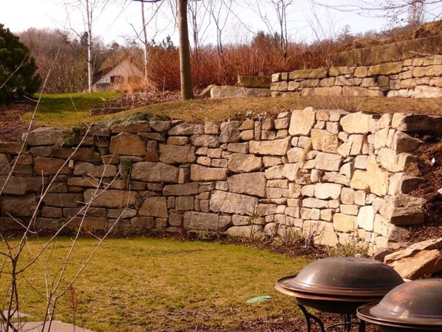 Die moderne Art der Gartengestaltung und Hangstützung ist der Sichtbeton, die traditionellere die Wurfsteinmauer.